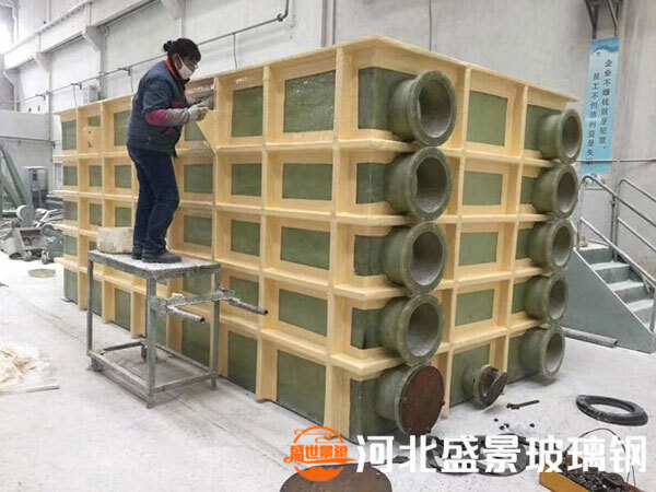 根據(jù)未使用的介質和溫度,玻璃鋼方槽由未使用的樹脂進行模具制作,研磨膏鋪設到一定厚度后,固化后去除內部磨料,根據(jù)未使用的鱗片制作外鋼骨架,起到加固外墻的作用。